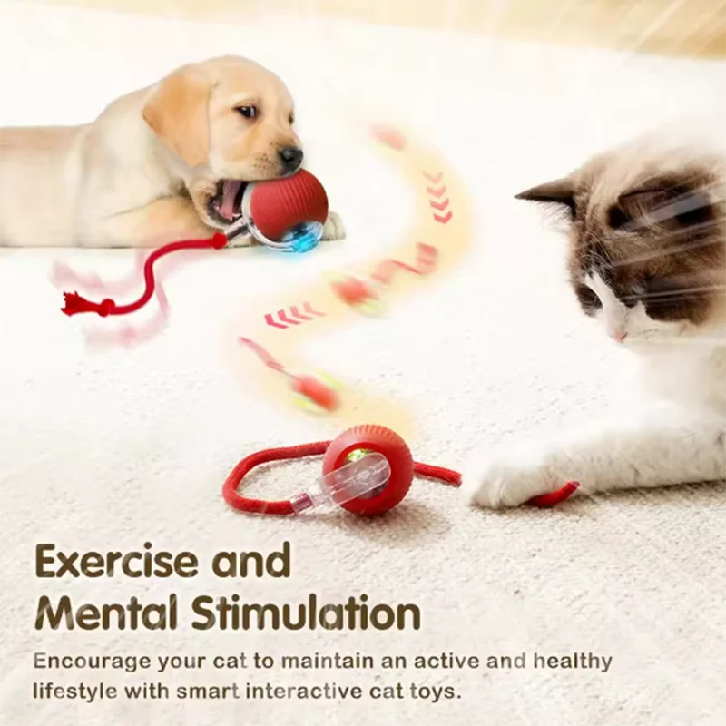 Interaktives Katzenballspielzeug, automatischer Rollball mit Schwanz, wiederaufladbares intelligentes interaktives Haustierspielzeug, intelligentes Spielzeug für Katzen
